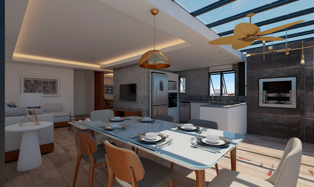 Projeto de cobertura residencial no Guarujá, desenvolvido com foco em integração, conforto e sofisticação. A proposta valoriza a relação entre áreas internas e externas, explorando iluminação natural, materiais duráveis e soluções funcionais adequadas ao clima litorâneo. Os ambientes foram pensados para convivência e lazer, com layout fluido, estética contemporânea e atenção aos detalhes, resultando em um espaço acolhedor, elegante e eficiente.